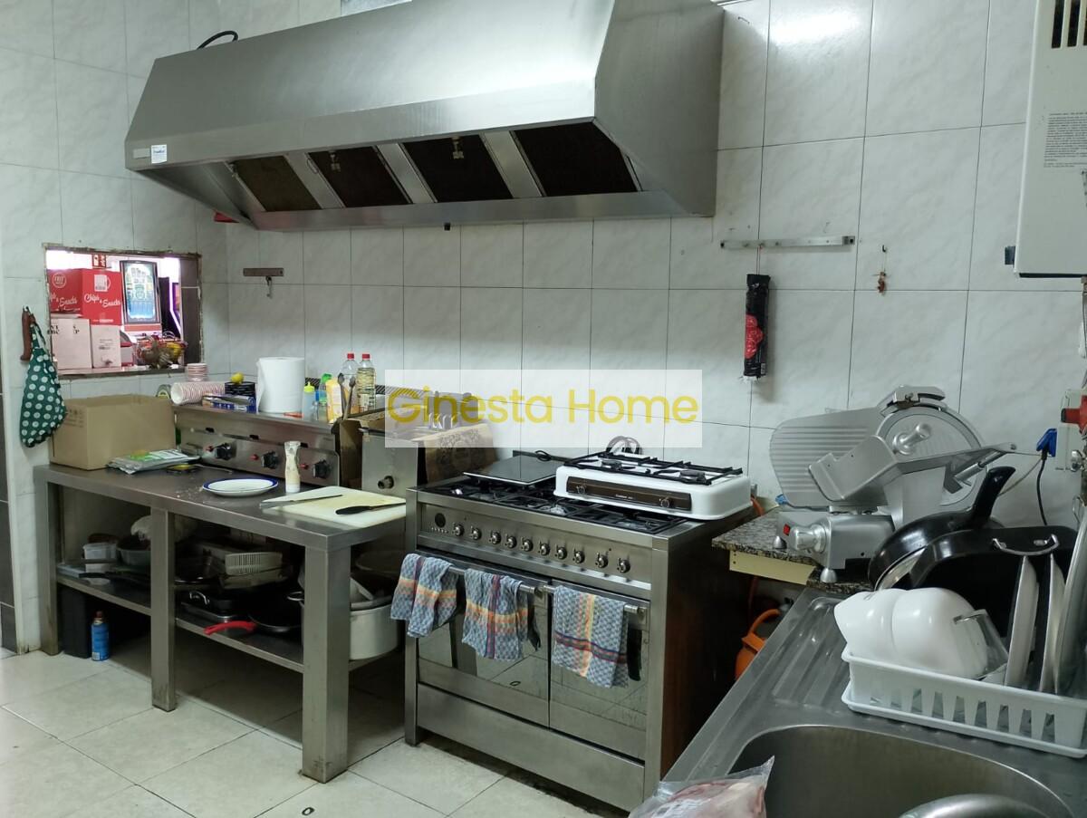 El local està 100% equipat en cuina, barra i sala, sense necessitat d'inversió inicial. Gaudeix de cuina industrtial, amb cambra frigorífica professional, múltiples neveres, 2 forns, planxa, extracció i tot el parament necessari. A més té una zona d'oci i serveis addicionals, com billar, futbolí, tres màquines recreatives i màquina de tabac.